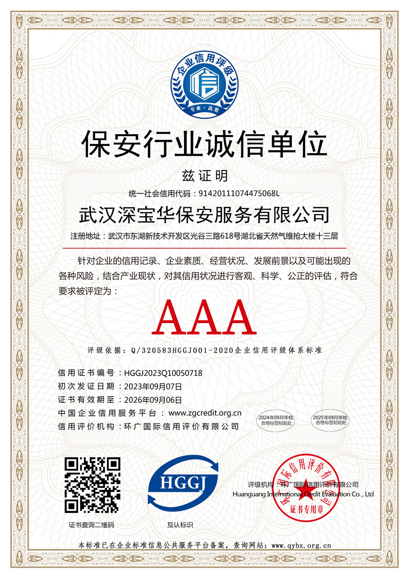 保安行業(yè)誠信單位-中文